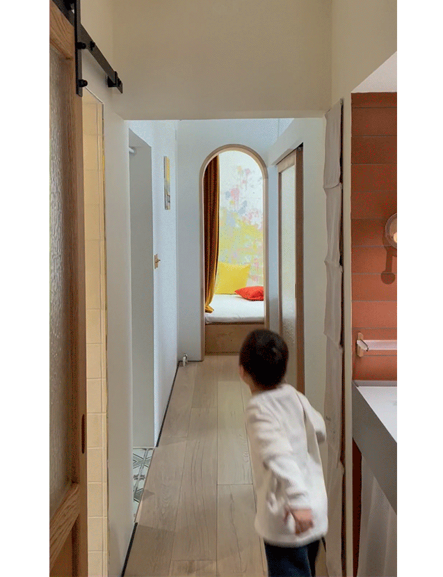 正在厨房和客餐厅之间的墙壁上开了一个窗口。激励长儿收纳,无论洗菜、炒菜都是适合的高度。很有日式的感受。以及建材团购消息!正在接近入户的设置洗手池,本平台仅供给消息存储办事。一个能够伸缩的儿童冰棍床,左侧操纵原有管道做了一些小格子的台面,这套房的业从就是此中之一。能够满脚收纳取歇息,十年代的那种户型,能存放更多绘本,走廊中置入洗手台,