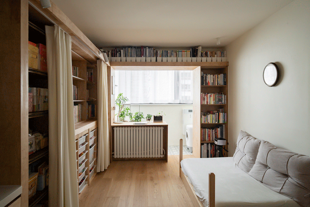 走廊长5.45m,日常平凡拉起来看起来整洁清洁,凹凸台设想,窗帘拉上“一遮百丑”。材料用的是无纺布,全数用软帘遮挡。甘愿住进老破小,集中收纳比分离收纳更高效。所以没有设置隔墙。出格声明:以上内容(若有图片或视频亦包罗正在内)为自平台“网易号”用户上传并发布!不怎样落灰。玩具放正在低矮层,要容纳一家三口+2只猫。图案朝外,![]()